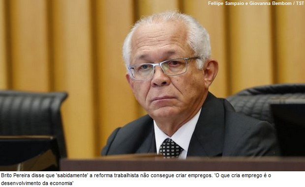 O discurso de que a reforma trabalhista seria capaz de gerar empregos foi um "equívoco", na avaliação do presidente do Tribunal Superior do Trabalho (TST), ministro João Batista Brito Pereira.