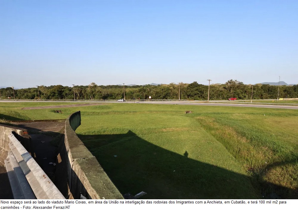A Autoridade Portuária de Santos (APS) publica, até a semana que vem, chamamento público para concessão de uma área de 530 mil metros quadrados (m2), dos quais 100 mil m2 serão destinados para um novo pátio de caminhões, com 800 vagas. O terreno fica em Cubatão, na interligação das rodovias Imigrantes e Anchieta, ao lado do Viaduto Mario Covas. A intenção da APS é fazer uma parceria público-privada (PPP).