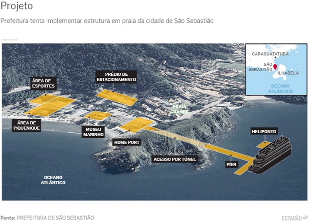 A Secretaria de Turismo e Viagens do Estado de São Paulo (Setur-SP) informou que o corpo técnico da pasta, juntamente com o município de São Sebastião, estuda os aspectos técnicos e de negócios do projeto do Home Port, proposto pelo município. A pasta não citou prazo para a conclusão do estudo.