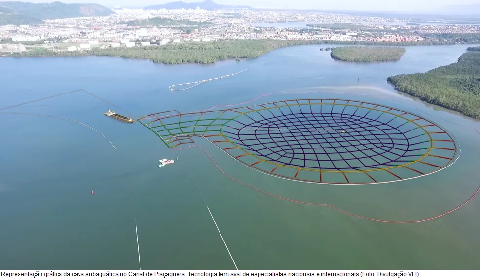 Por meio de nota ao g1 em sobre a ação civil pública, a VLI disse que a cava foi a solução técnica adotada para o confinamento seguro dos sedimentos dragados do Canal de Piaçaguera que já estavam na região há décadas.